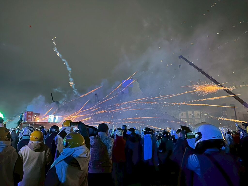 台南の伝統行事であり、「世界で最も危険な祭り」の一つとも称される「鹽水蜂炮(イェンスイ・フォンパオ)」。
