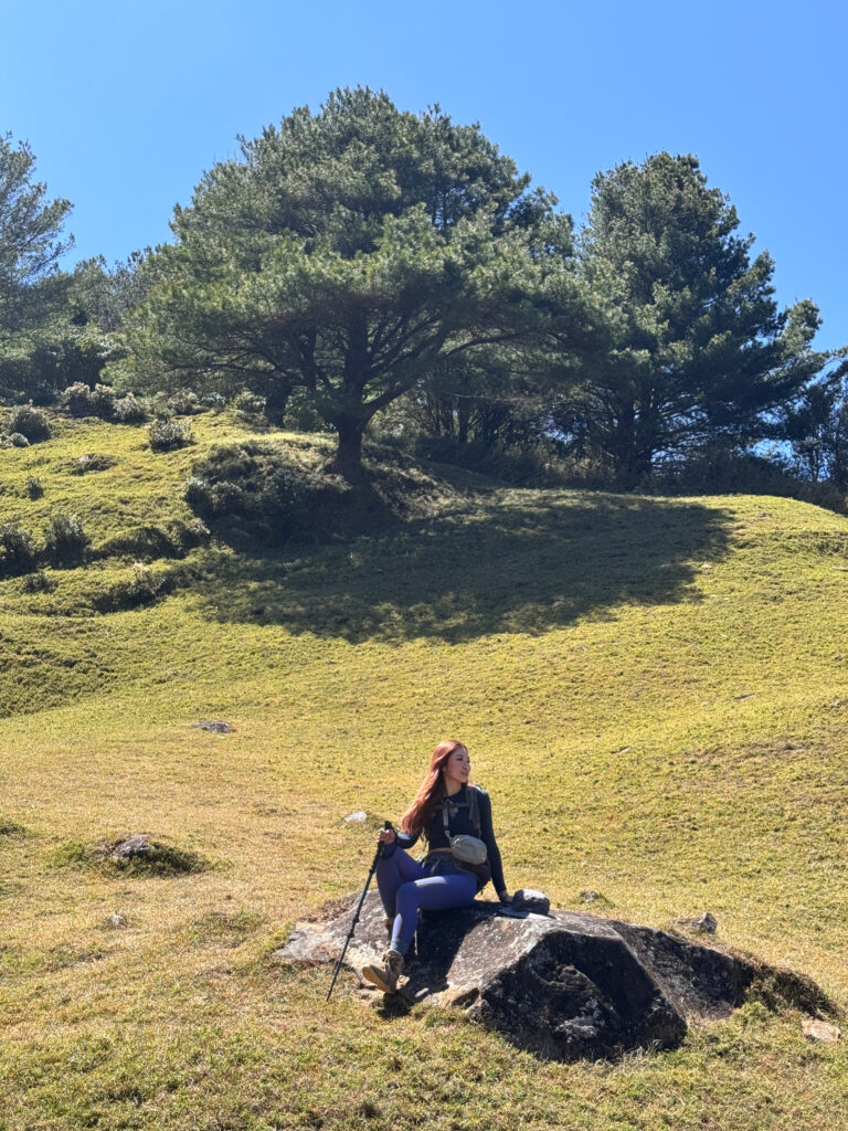 道中は、防火帯として木が切り開かれた広い草地が続いており、視界が非常に開けています。森林の中を歩く時間は短く、常に絶景を横目に歩けるのがこのコースの醍醐味です。ただし、標高が2,800mを超えているため、空気は薄めです。ゆっくりとしたペースを心がけ、高山病には注意しましょう。