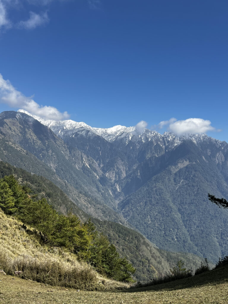 最大の特徴は、台湾最高峰・玉山主峰(3,952m)を含む玉山群峰を、谷を挟んだ目と鼻の先から眺められることです。厳しい入山制限やハードな登山が必要な玉山とは対照的に、麟趾山は入山許可証が不要(2026年現在)で、整備された歩道を歩くだけで、まるでアルプスのような高山美景に出会うことができます。